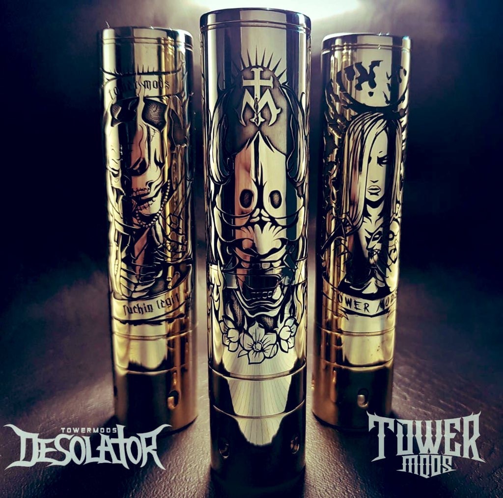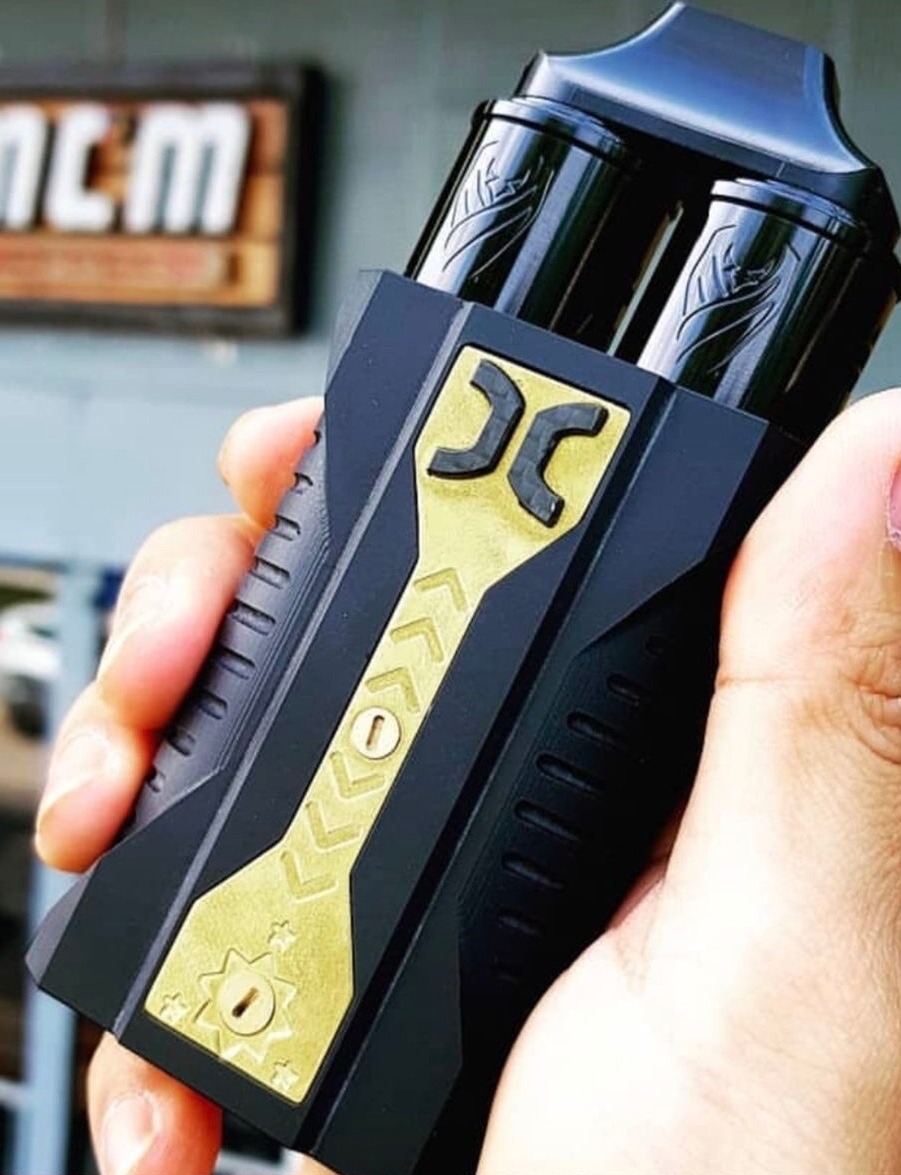MCM定番のデュアルバッテリー・シリーズBox Mod。ブラックデルリンのボディに全面マシンエングレービングを施した限定バージョン✨【A】【B】2種。
