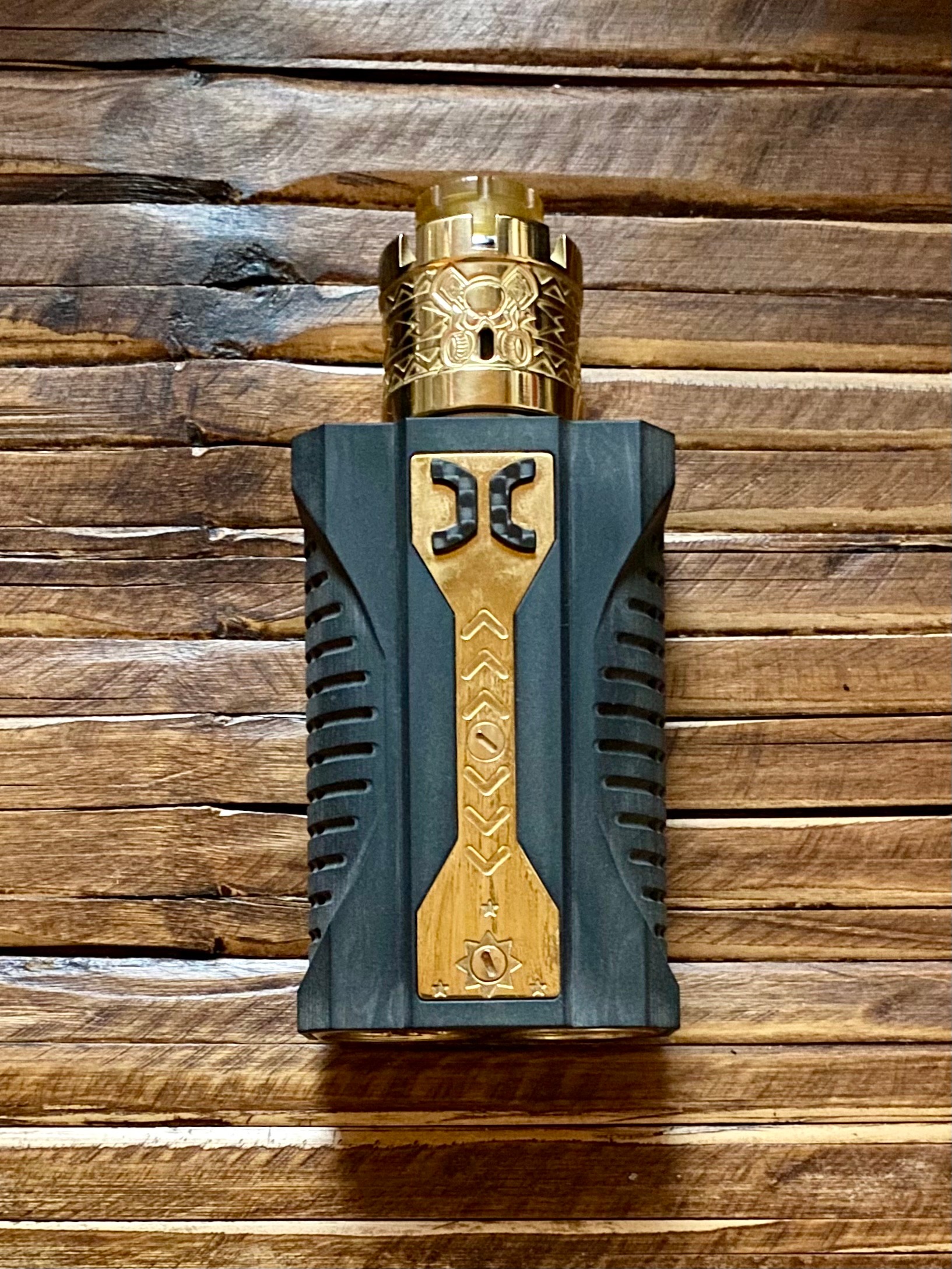 当店ではお馴染みD’MAKERの新作【SOLOUS X V2】の入荷です! 2020年1月に即完売した【SOLOUS X】の後継で、ハンドカービングを施した【Amarillo Wood】ボディにはCAコート、更にインナーブラスTUBEにもハンドカービングとハンマー加工後にニッケルコートと、所有感を満たしてくれる贅沢な仕上がりとなっています。コンパクトサイズなのに21700バッテリー対応。30mmアトマイザー搭載可能。クリップスイッチは通電もバチバチ。