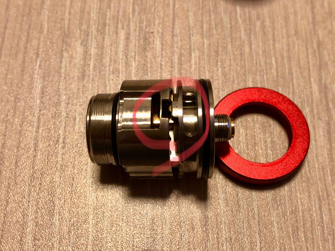 エアフロー調整はインナーチャンバーとスリーヴの隙間で調整します。お好みのフローの隙間でトップキャップを固定します。この時エアフローコントロールキャップを絞めすぎないようにしてください!外れにくくなります。