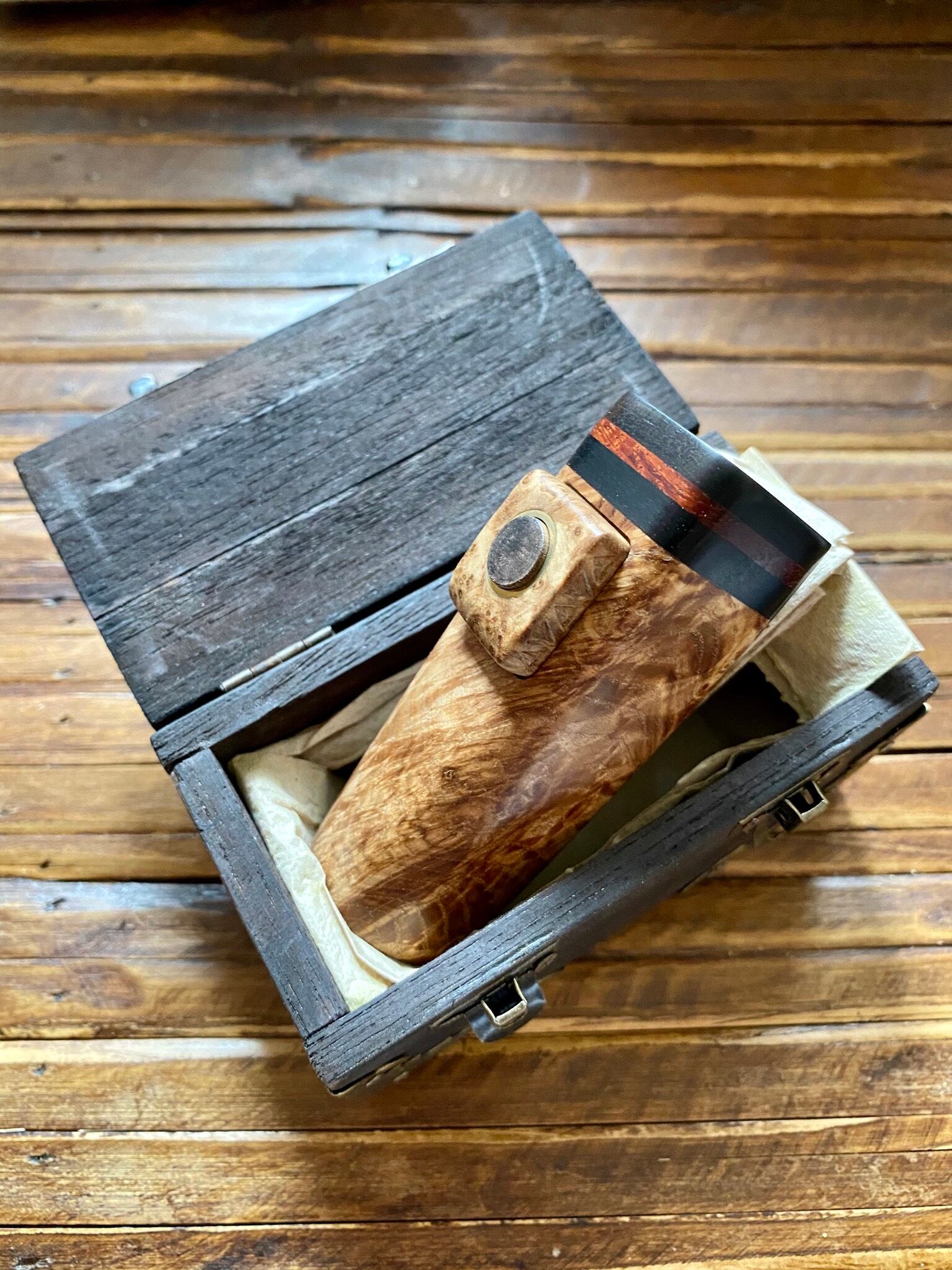 ウクライナ産・最高級【Amboyna】スタビライズドウッドのブロックから選び、新システム【マグネティック・スイッチ】を搭載した新スタイルのMOD。