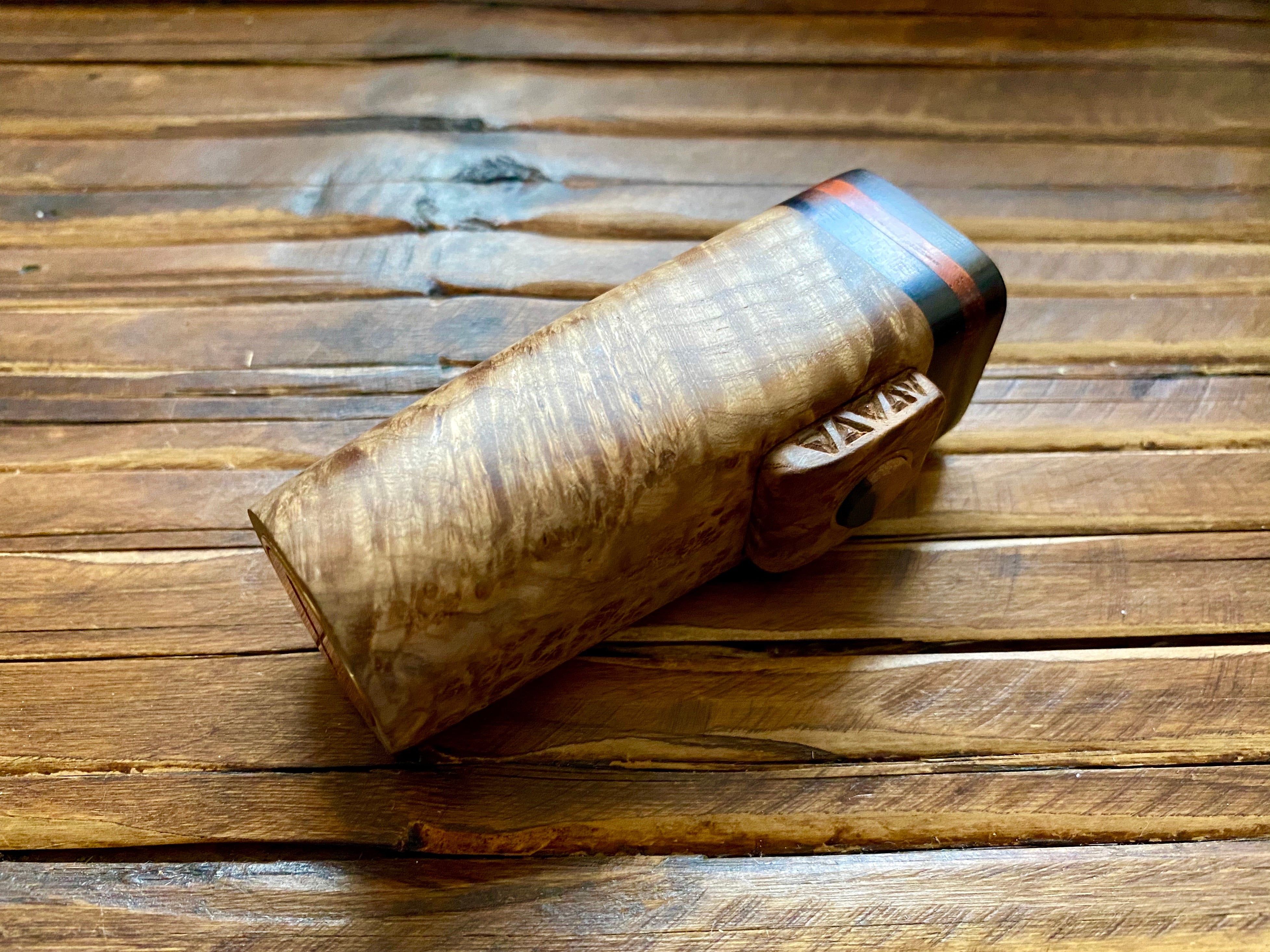 ウクライナ産・最高級【Amboyna】スタビライズドウッドのブロックから選び、新システム【マグネティック・スイッチ】を搭載した新スタイルのMOD。