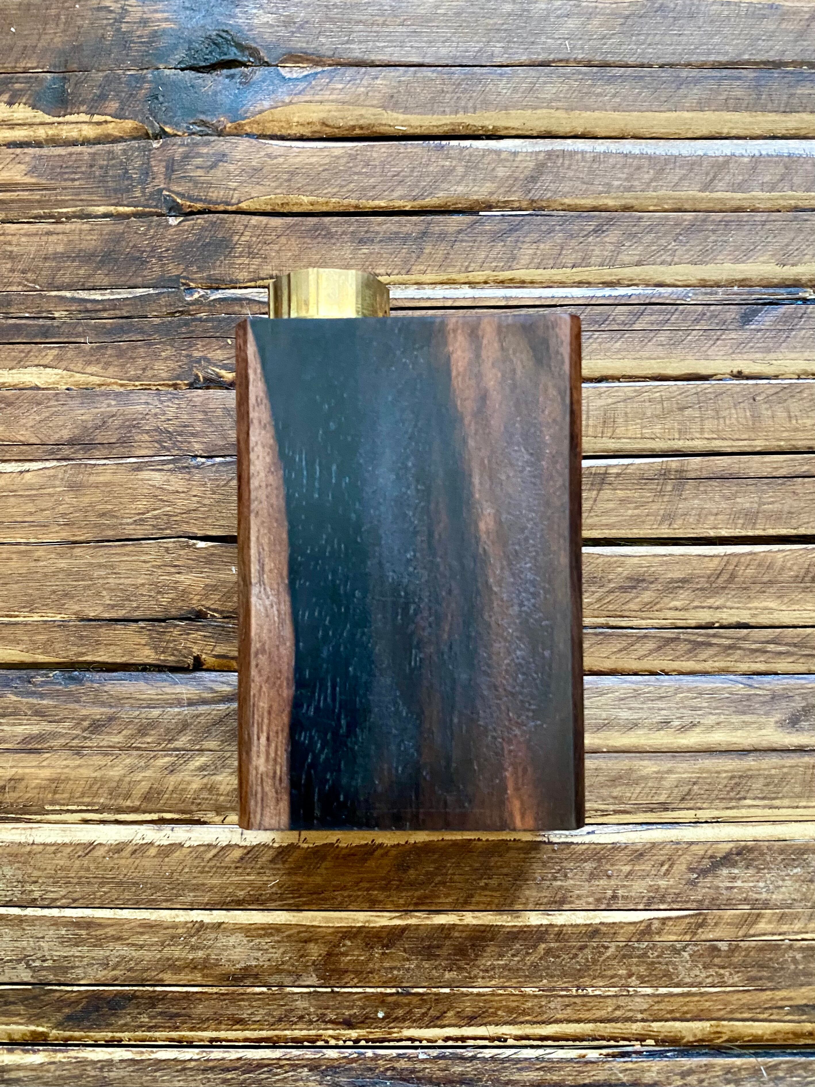 タイガーカマゴンと呼ばれる黒と茶の混ざりあった柄がモダンアートのようです。エンブレムは小さく右下に。木の風合いと手触りをぜひお楽しみください^ ^
