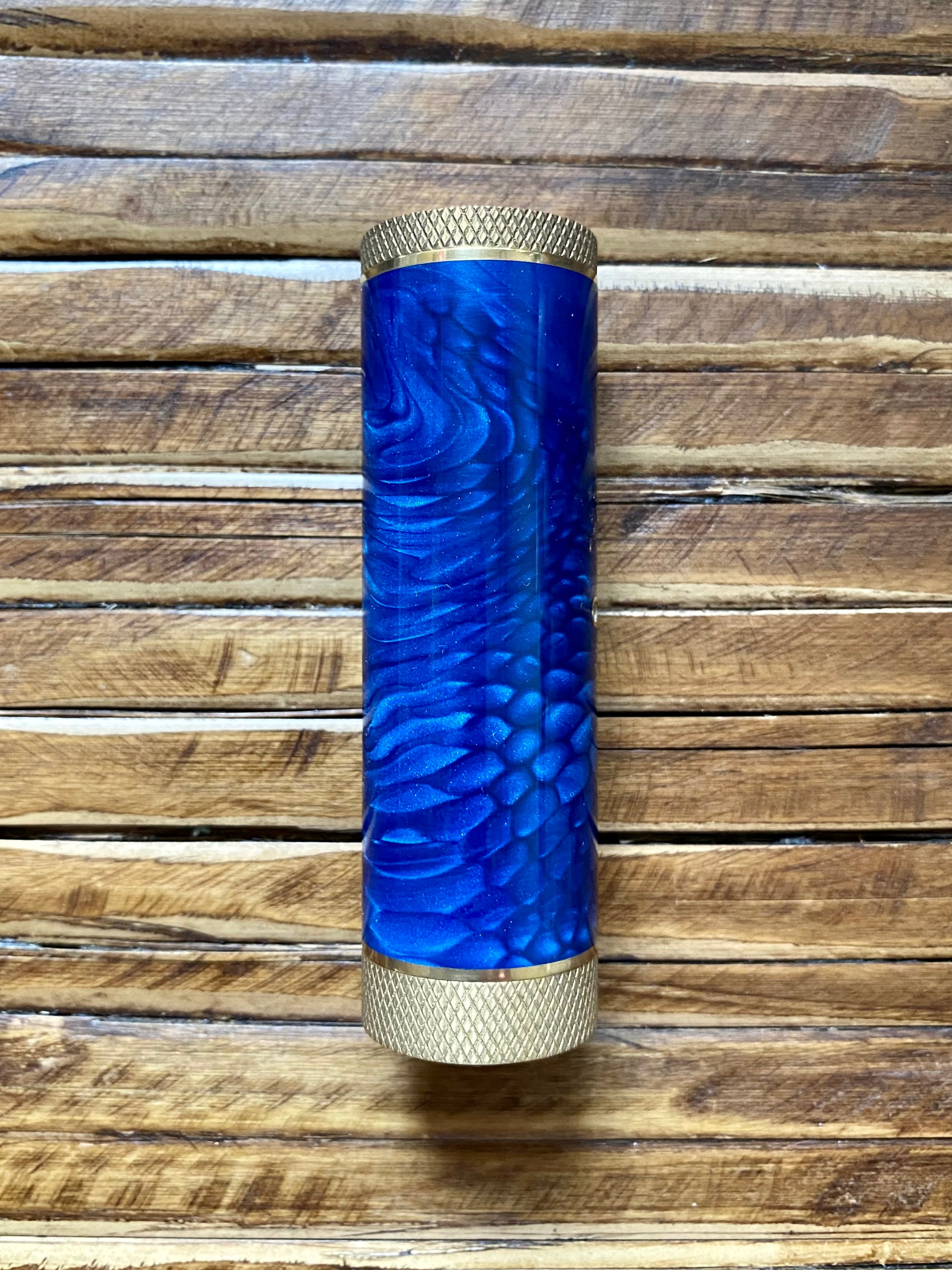 初代スタビV1, 白黒デルリンとSampaloc木, Kamagong木のV1.5, スタビV2を経てスタビ & JUMAのV3です。(JUMAのBUZOKUは初出) トップ & ボトムキャップにはローレット細工を施し、スイッチ裏にも同じJUMAを使用。やっぱBUZOKUはカッコいい!