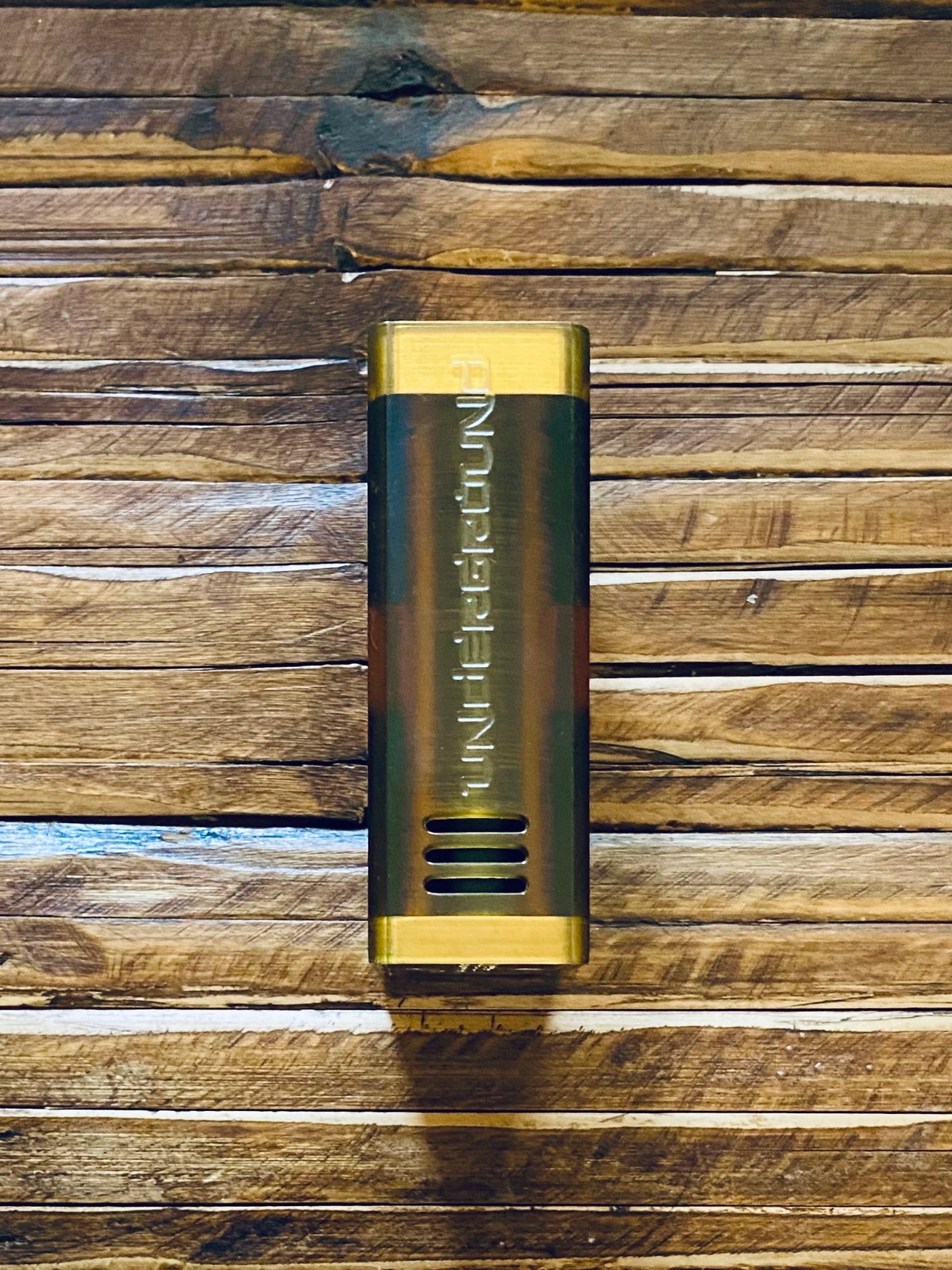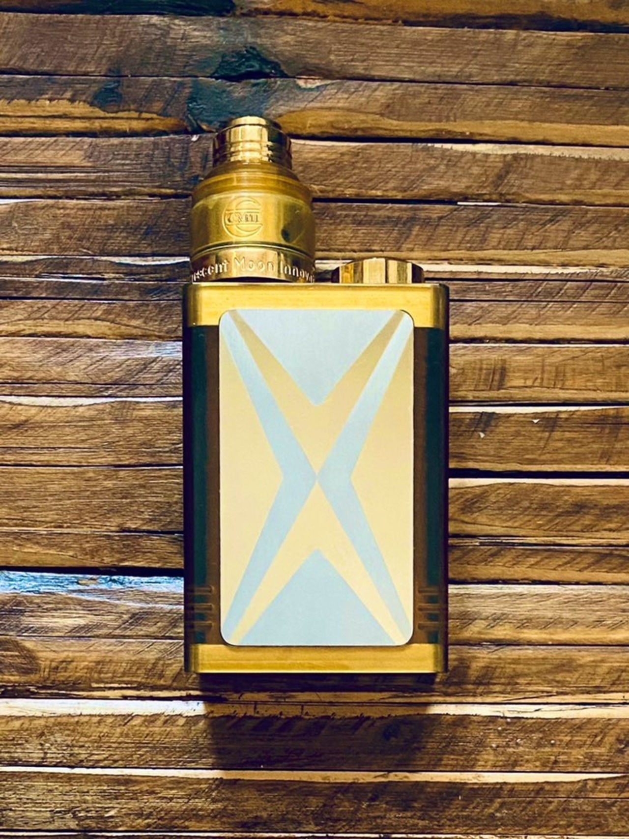 型は定番のシリーズBOX MOD【UDG V】ですが、Xデザインのミラープレートとブラスボトムプレートの刻印が特別仕様。