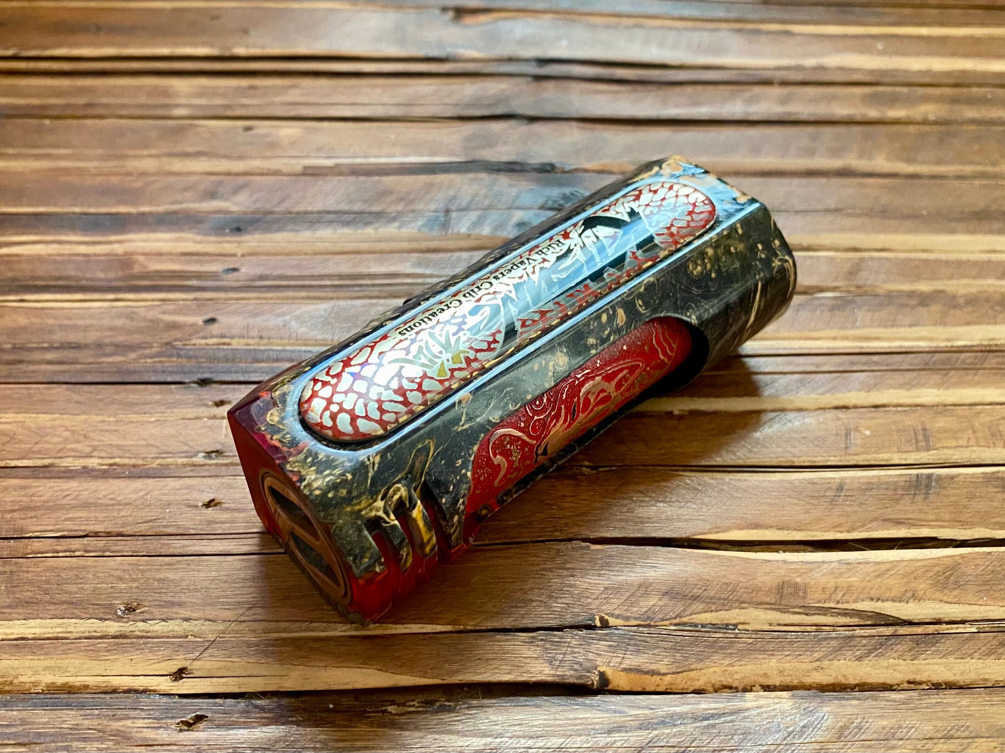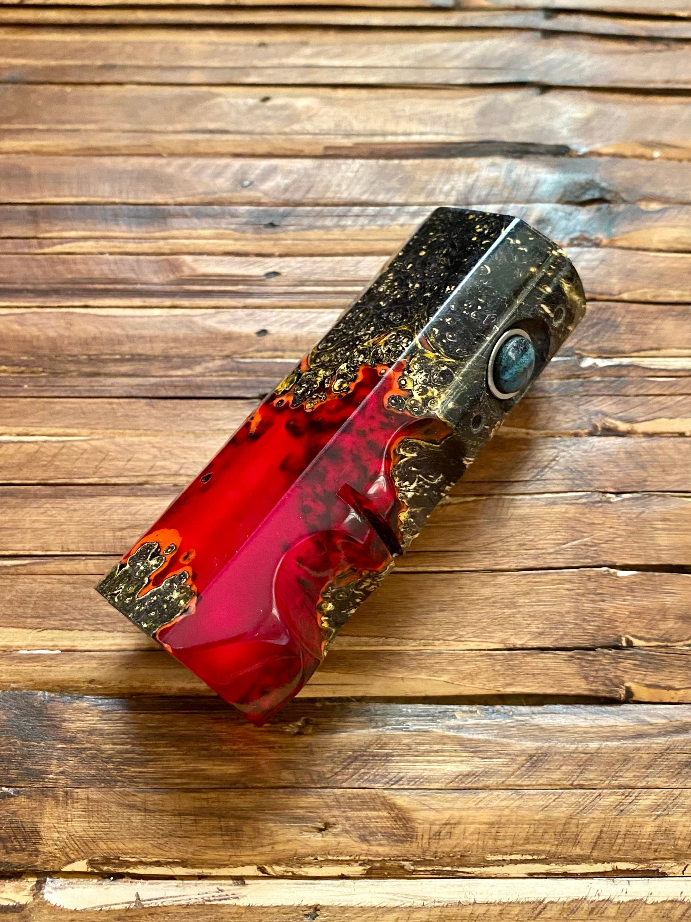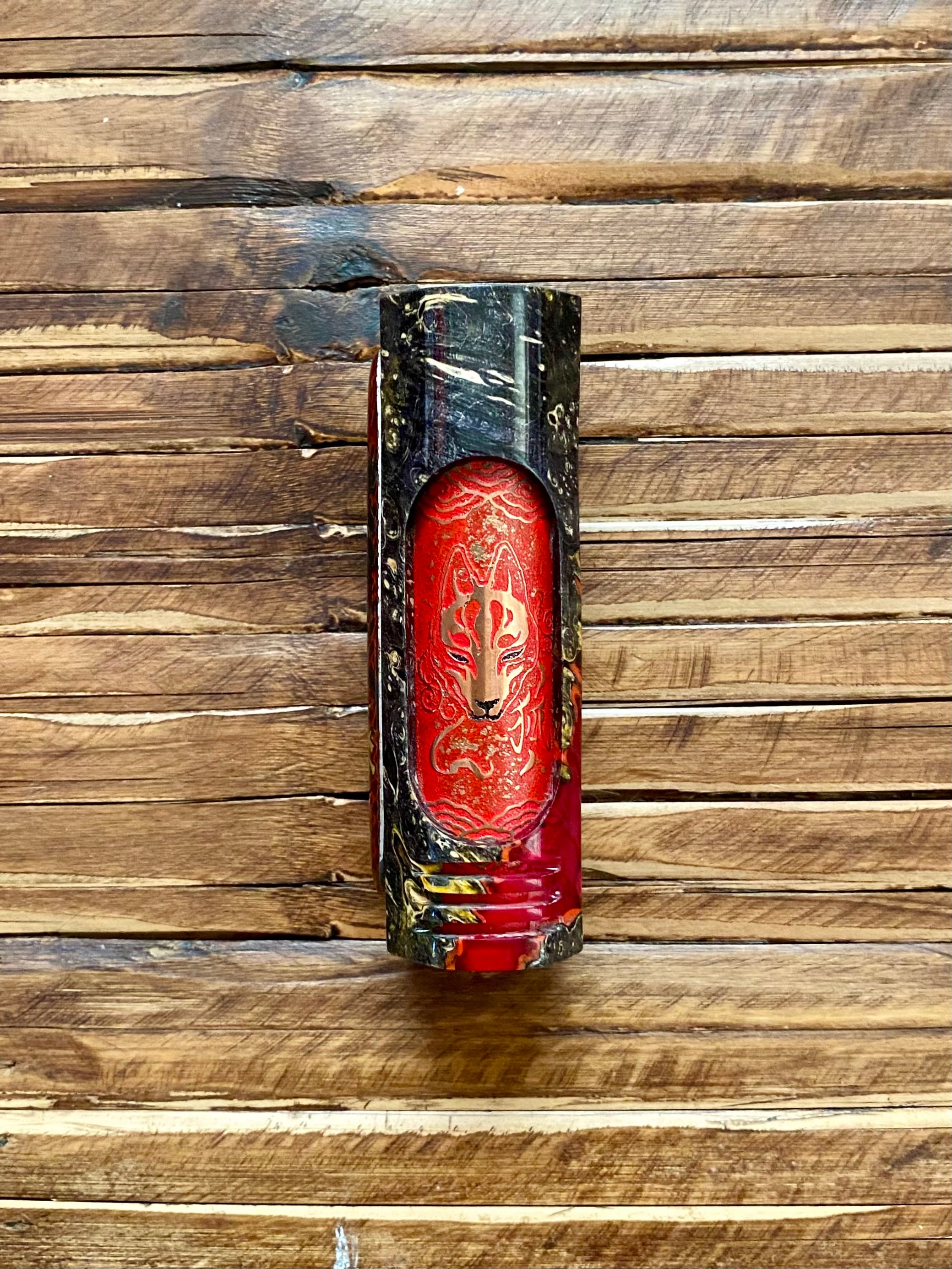 オーダーのみでしか生産されなかった貴重な【KITSUNE 狐】のハイブリッドスタビモデル。ダーク系スタビに血のごとく鮮やかな赤レジンが混ざりあった美しい逸品。眼玉スイッチが更に禍々しさを増しています。一点限り。