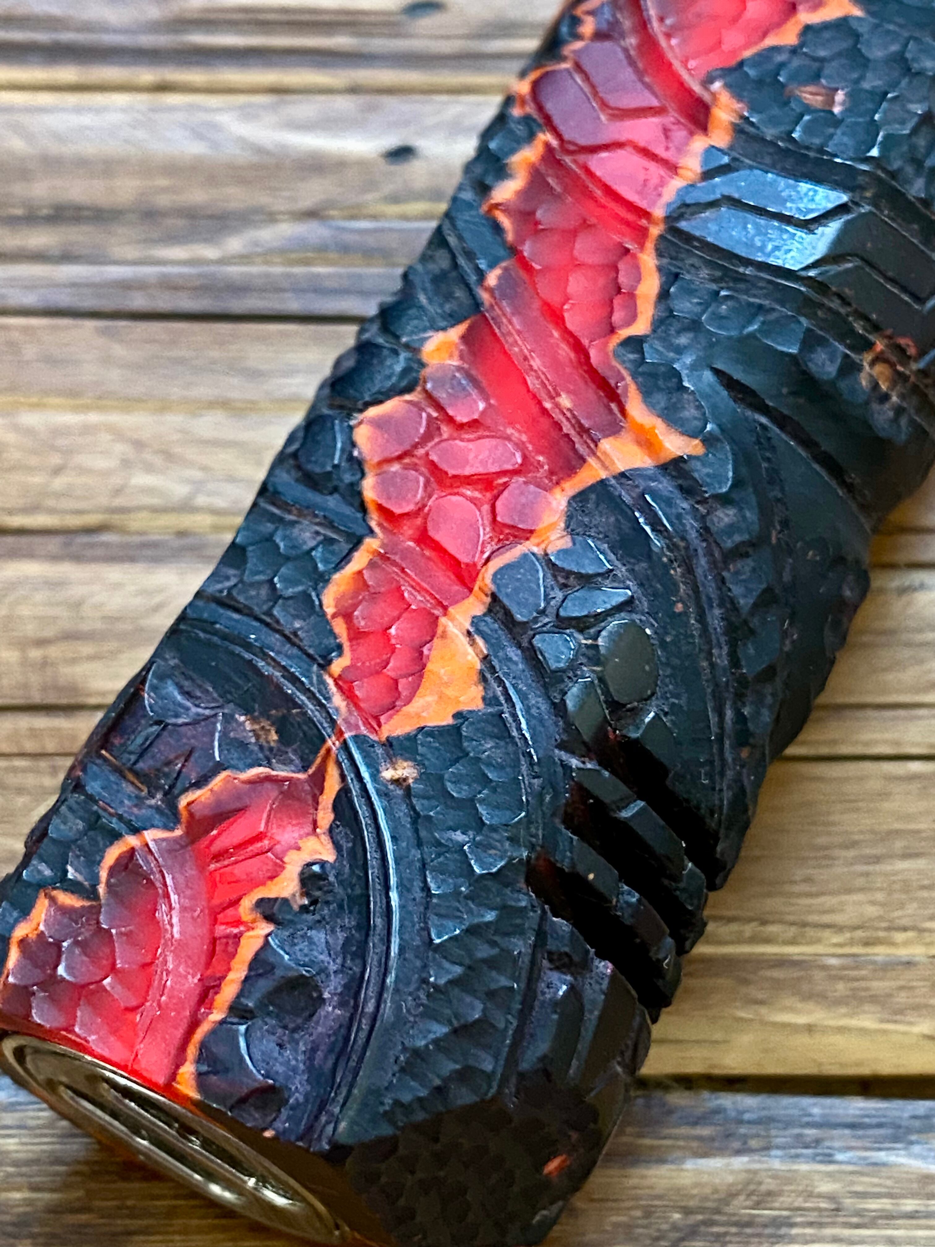 妖しげな赤黒ハイブリッドスタビボディにLKC主宰Ruelによる全面トライバル柄を手彫りした 【ZETEKI】最上位モデル。